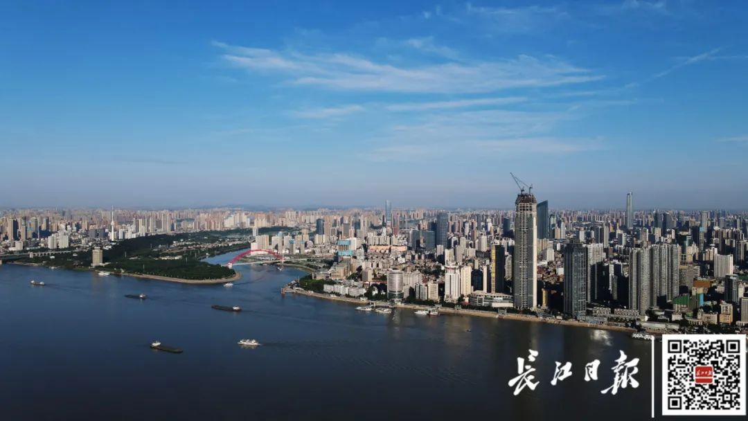 天气晴朗,碧空如洗,从高空俯瞰武汉两江四岸,城市美景尽收眼底。记者何晓刚 摄