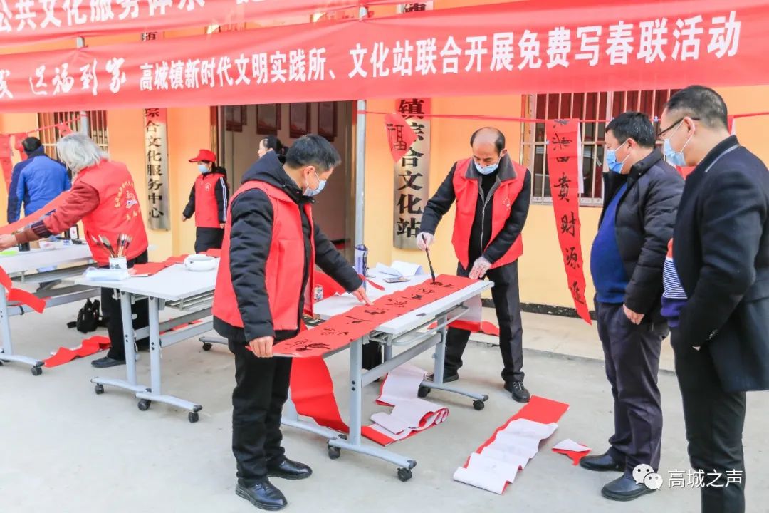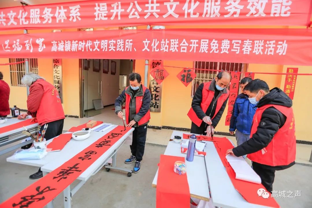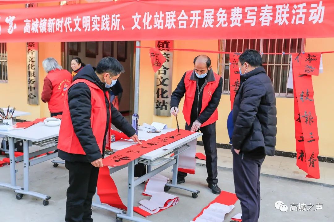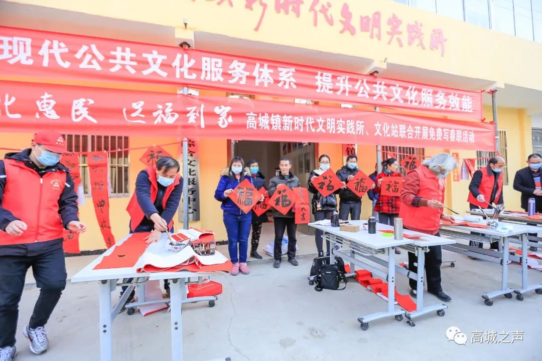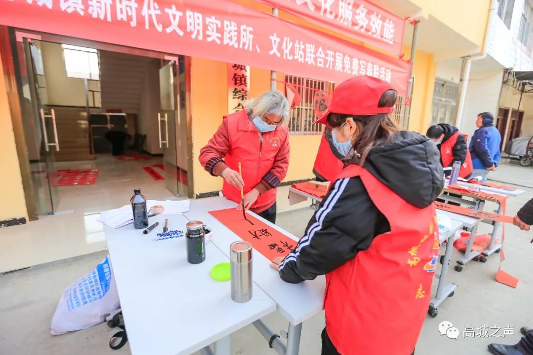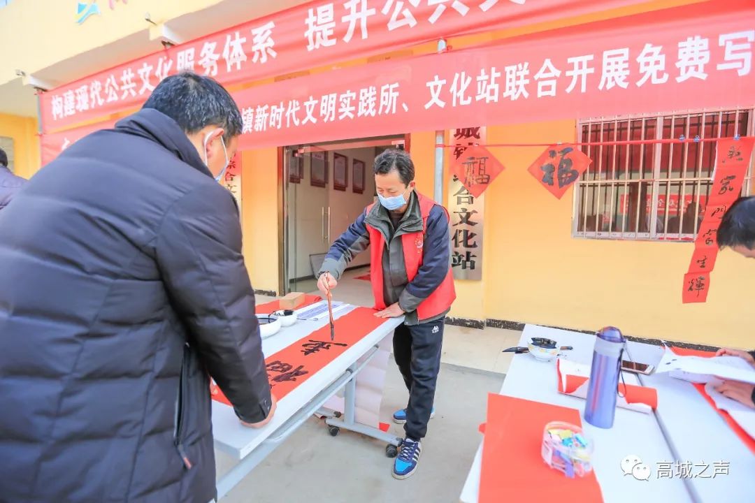 为弘扬中华优秀传统文化,营造欢乐、喜庆、祥和的节日氛围,2月2日,高城镇新时代文明实践所联合高城镇文化站开展“文化惠民,送福到家”免费写春联活动,将春节的美好祝福送到每一位居民心中。