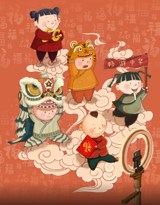 五“福”云上直播(插画)。(作者 刘柳)