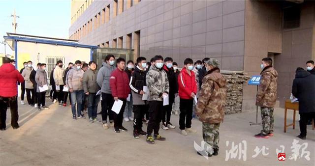 2月1日,广水市组织开展2021年春季征兵体检工作。经扫健康码、测量体温后,80余名应征青年进入该市中医院征兵体检点接受体检。