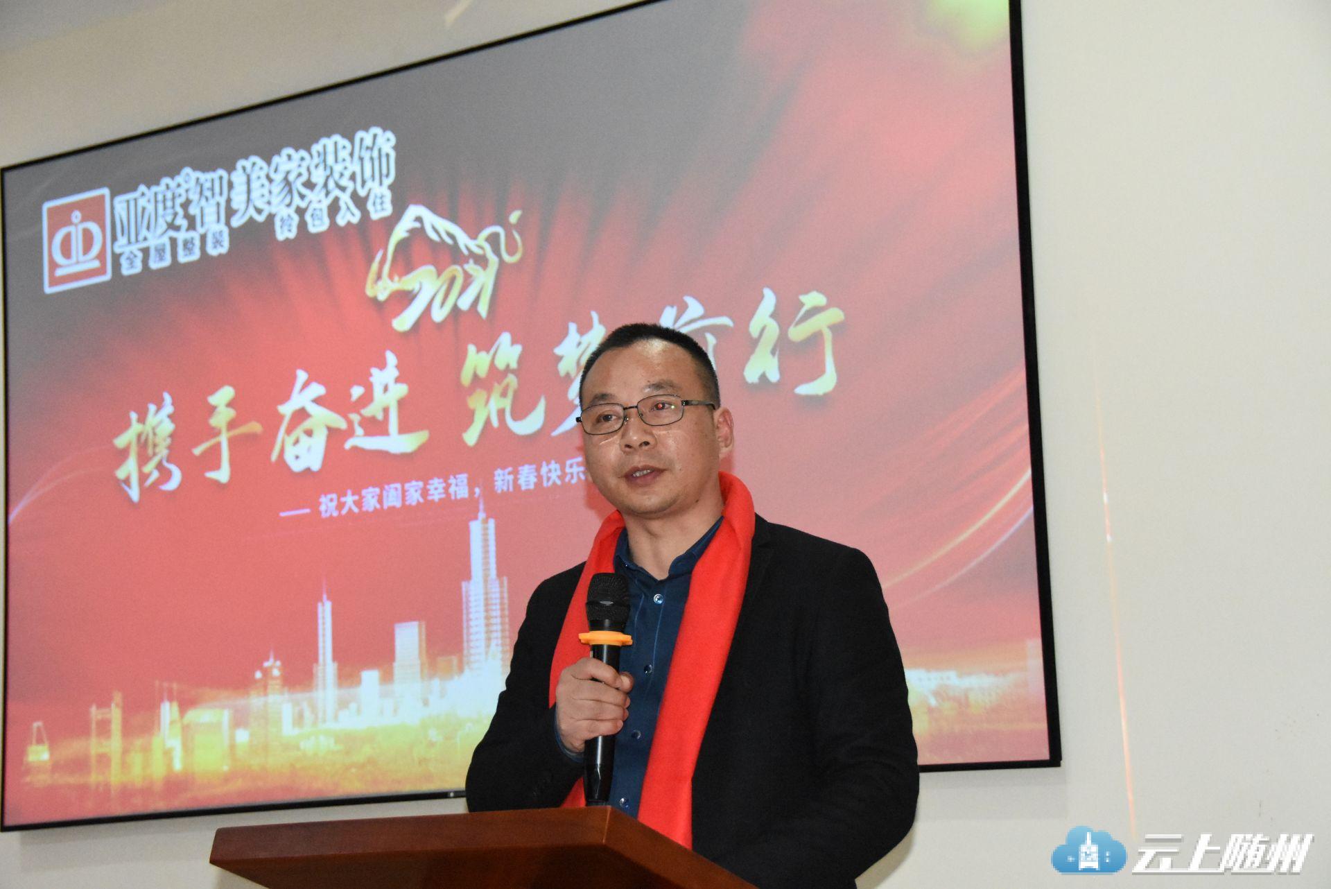 随后,公司副总经理熊天国致辞,他说,2020年公司承前启后,继往开来,没有被疫情压垮,在市场夹缝求生存,齐心协力、锐意进取,取得一个又一个突破,赢得客户认可,收获可喜的成绩。2008年,亚度家居进驻随州,得到千家万户的青睐和好评。2018年,正式成立亚度智美家装饰集团随州分公司,仅在短短一年多的时间,其家居时尚和人性化家居解决方案,彻底颠覆随州传统装饰行业,从而引领随州装饰潮流。他还就加强销售团队建设,加大市场拓展能力,实施差异化营销;加强学习,为提高工作效率打下基础;始终坚持抓工期、抓质量、抓安全等方面工作提出要求,让亚度智美家的技师是一流工匠,让亚度智美家的工地一定是随州的明星工地。