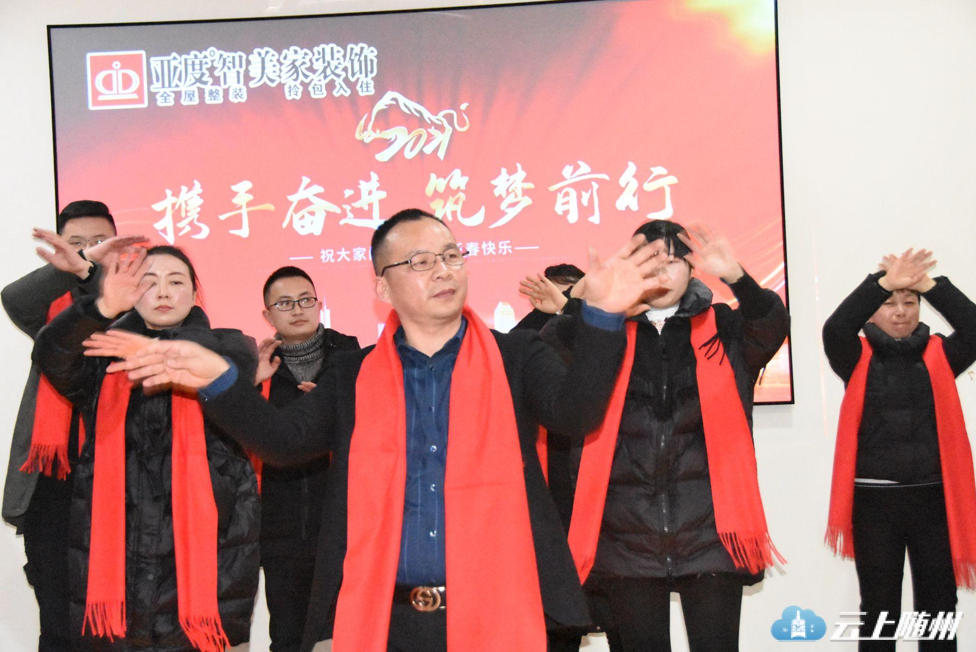 2021年1月31日,随州亚度智美家装饰工程有限公司“携手奋进 筑梦前行”工作年会在公司旗舰店隆重举办,近百名公司员工欢聚一堂,以自己独有的方式,辞旧迎新话未来。 “团队以和睦为兴盛,精进以持恒为准则;健康以慎食为良药,争议以宽恕为旨要;长幼以慈爱为敬德,学问以勤习为入门……”“感谢客户,帮我们实现梦想!感谢公司,给与我发展平台!感谢公司优秀员工,帮助成长!”迎春年会在全体员工整齐洪亮的企业文化声中拉开帷幕。