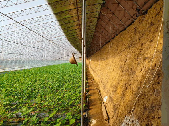 走进夯土大棚,一股热浪扑面而来,好似进入“桑拿房”。根根藤蔓墨绿冲顶,橙黄的黄瓜花竞相怒放。“大棚采用特殊薄膜覆盖,热时吸热蓄热,冷时放热保温,使棚内始终比外面高出十多度。”广水市实实在在生态农业发展有限公司总经理黄波说,“可别小看了这十多度,10月过后,气温持续走低,普通大棚内已不适合蔬菜生长,但夯土大棚内的温度可保证蔬菜12月上市,直到来年6月罢市,确保整个冬季蔬菜的供应。”