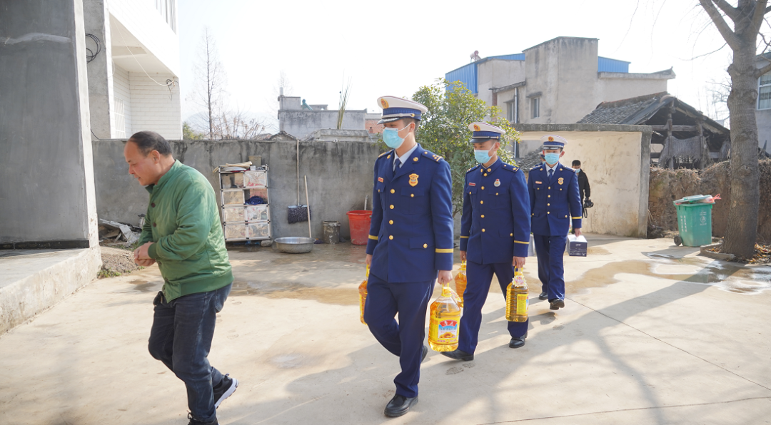 在陈随家中,消防人员为他的家属送去米、面、油等生活用品,向他们致以新春的问候和祝福,详细询问病人的身体情况和生活状况,嘱咐家属保重身体,在工作和生活中遇到困难及时向组织反映,大队会尽最大努力帮助他们解决实际困难。