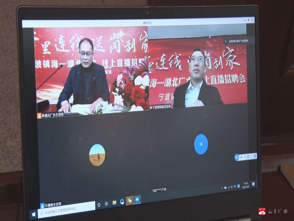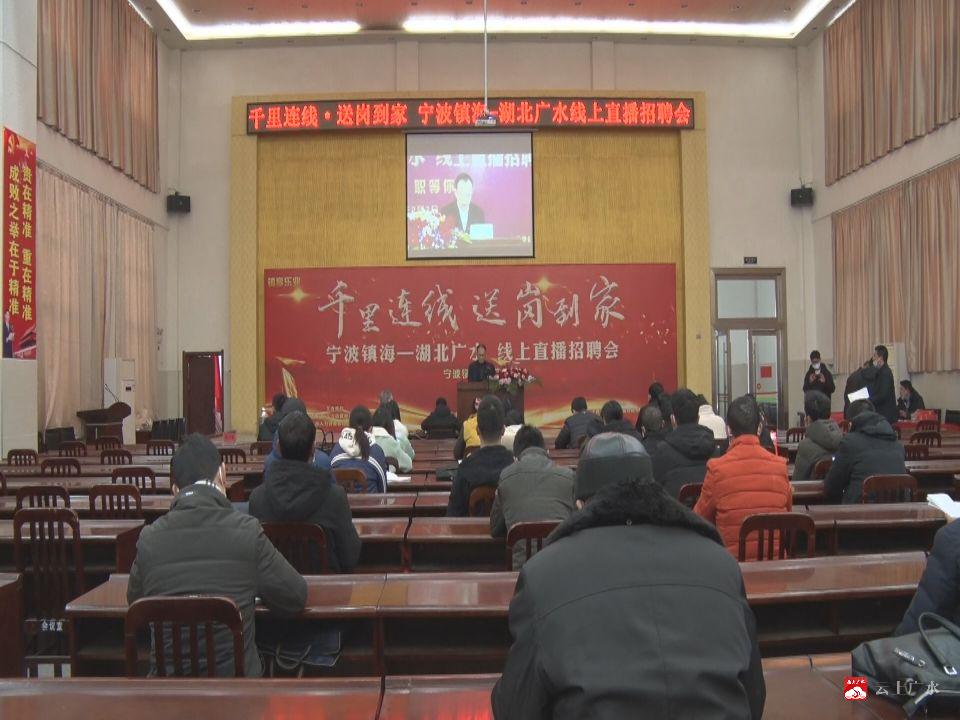 2月7日,由宁波市镇海区就业服务管理中心和广水市劳动就业局联合举办的宁波镇海—湖北广水线上直播招聘会在广水市李店、陈巷、长岭、余店四个会场同时开展。