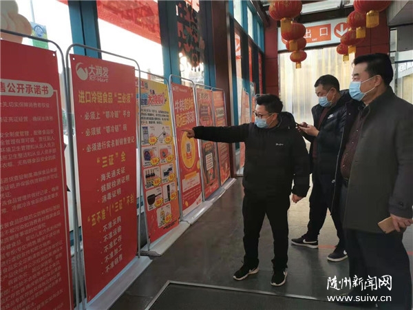 绷紧市场防控弦,把好冷链食品关。记者来到城区大润发超市,市民进入卖场前都自觉戴口罩、扫码、测量体温,临近春节,超市内人流比平时稍多。在水产区的销售柜台后,悬挂着“冷链商品核酸检测证明”公示栏,并标注“我们的进口冷链食品已经经过核酸检测请放心购买”。大润发随州店经理李想介绍:“超市严把进口冷链食品进货关,货物必须‘三证’齐全,到达随州后进入本地监管仓,经过卫生防疫人员消毒后才进到大润发。而且,产品信息均录入鄂冷链平台,按规定赋码再销售,让消费者能清楚查询到所购的商品在进口、运输环节的消毒、检测相关信息,买得更放心。”