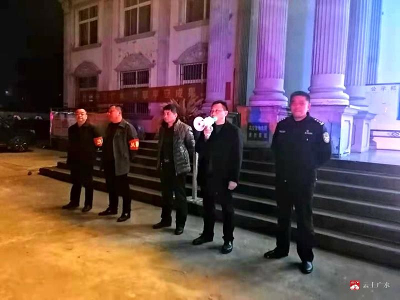 为认真贯彻落实全市禁放要求,进一步营造禁放烟花爆竹宣传氛围,给辖区群众提供一个安全、和谐的节日氛围,2月11日,大年三十除夕夜,广水城郊街道办事处组织综合执法中心、派出所及村辅警、民兵应急分队、村社区干部网格员共计130余人,对规划区范围内富康社区,城西村,跑马场村,八里岔村四个片区进行夜间巡查行动。