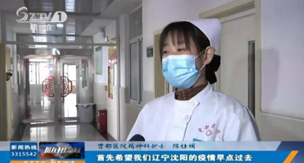 【采访】曾都医院精神科护士 陈桂娟:首先希望我们辽宁沈阳的疫情早点过去,然后还有对父母说,希望父母身体健康。爸妈,我今年又不能回家陪你们过年了,然后希望你们身体健康,幸福快乐,照顾好自己,你们身体好,是我最大的愿望,等疫情结束了,然后我就回来看你们,你们在家好好的,辽宁的亲人们,你们一定要坚持,一定要坚强,希望疫情早点过去,加油加油。