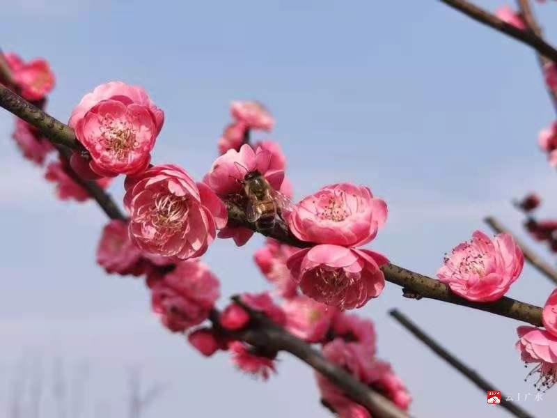 暗香浮动,蜜蜂穿梭。游客们在春光明媚的山坡上漫步,在浪漫花海中畅聊新春美好。大家拿起手机不停地拍摄,留下美好瞬间。连片竞相怒放的梅花与附近洁净的村落交融组合,成为生态旅游新景点,为广大市民群众提供了休闲旅游的好去处。