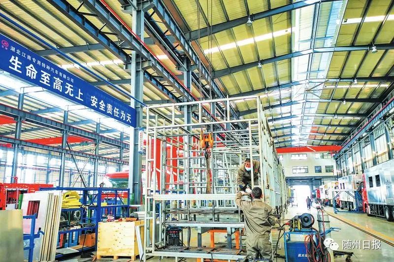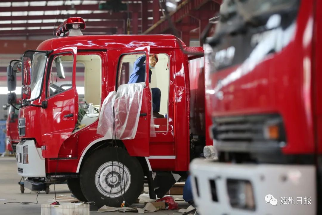 2月18日,新春上班第一天,湖北江南专用特种汽车有限公司已是一片热火朝天的繁忙景象——消防车间的生产线上,数十辆深红色的消防车正在加紧组装;应急特种车车间,机器轰鸣声中,高大威武的应急通信指挥车正逐渐成型……