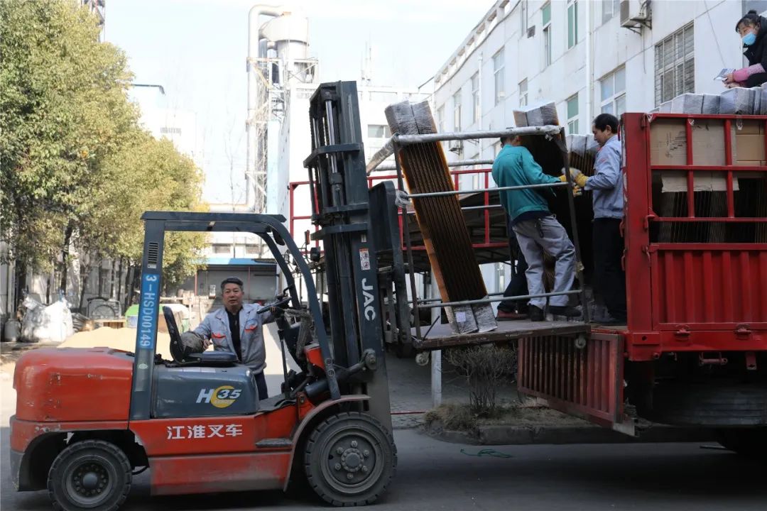 “初五我们已经发了一批36吨的货物到河南淅川,今天这批货物装完后,马上也要发车了。”据车间主任助理方开仙介绍,“公司今年的订单十分充足,春节期间工人们也在加班加点的赶制订单,目前企业已全员到岗,正在铆足全力发展生产。”