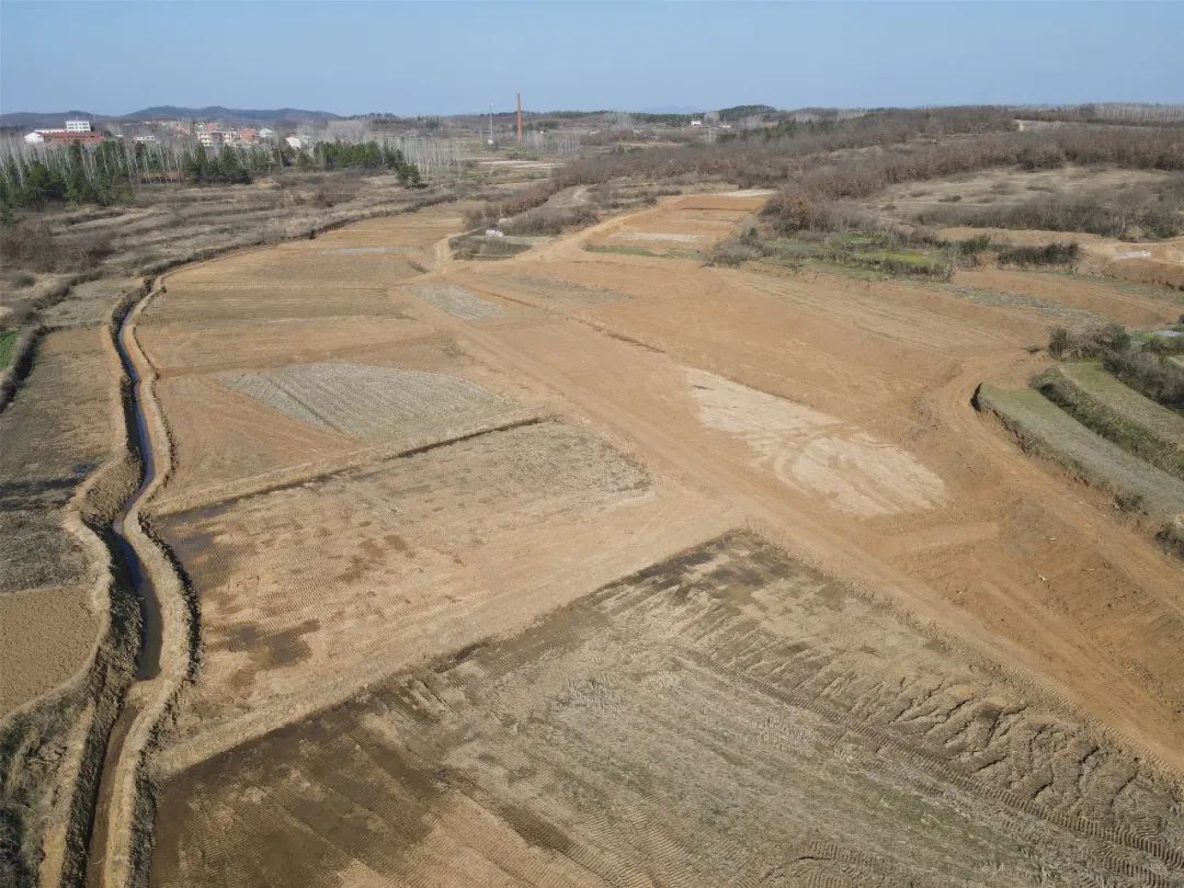 2月19日,走进北郊街道烽火山村高标准农田建设现场,看到挖掘机、推土机在田地里来回穿梭,平整田块、整修机耕道、修复沟渠,一片繁忙景象。