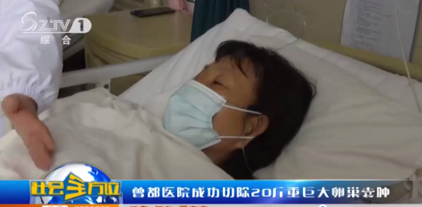 【采访】黄女士丈夫:当时感到非常惊讶,(囊肿)有20多斤,在她的这个腹部里面是怎么支撑过来的?作为丈夫,我也是有一定的责任,感到非常愧疚,做了手术之后,我们感谢医院医护人员,把这个(囊肿)切除了,感到非常高兴,通过这件事还是要对自己的家人多关心多照顾,尤其是女性方面,要时时刻刻提醒她去进行妇科的检查。