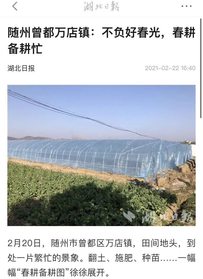 2月20日,随州市曾都区万店镇,田间地头,到处一片繁忙的景象。翻土、施肥、种苗……一幅幅“春耕备耕图”徐徐展开。