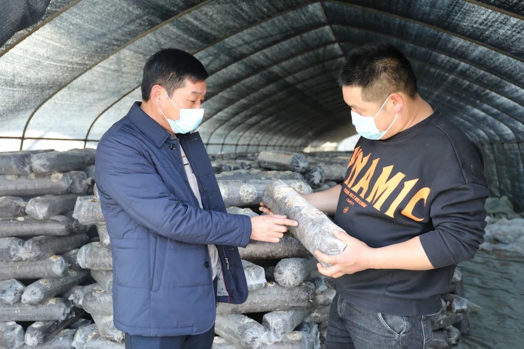 “夏书记,你看,这点下的菌种基本上都成活了,等到白色菌丝爬满菌棒,再休养一段时间,我这近十万棒香菇,收获的时候又有得忙了。”2月22日,在万店镇高庙村二组宝成家庭农场,农场主孟余刚抱起一棒已引种完成的香菇棒,向村扶贫工作队第一书记夏洪三展示“春茬”香菇种养殖情况。