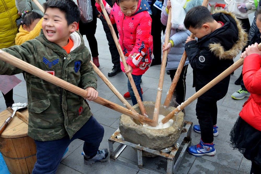 来景区展示打糍粑、捏糖人、炸米子等传统项目