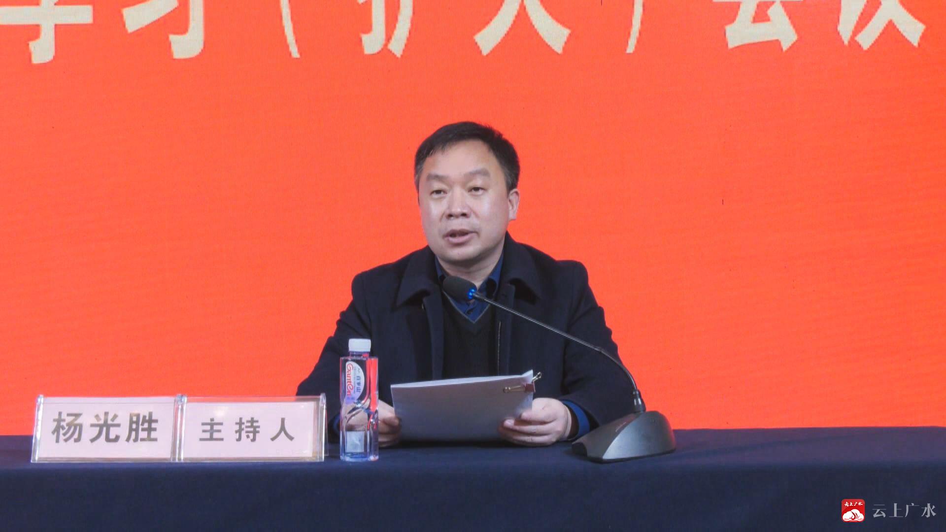 2月24日,广水市委中心组集中学习(扩大)会议召开,广水市委书记黄继军、市长杨光胜、市人大常委会主任石守超、市委副书记刘秀玲等市“四大家”领导参加会议。杨光胜主持会议。