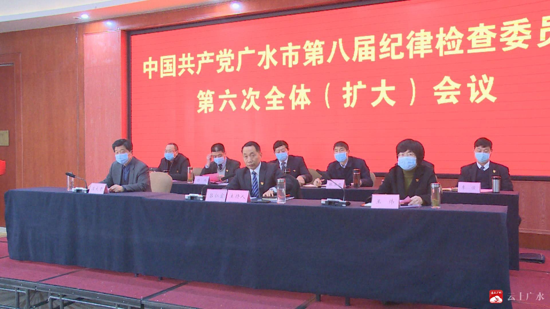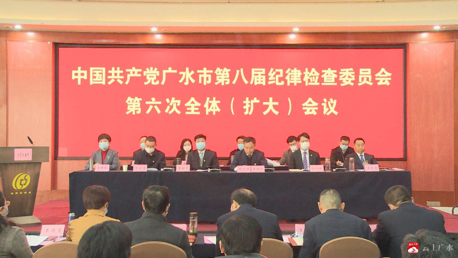 2月23日,中国共产党广水市第八届纪律检查委员会第六次全体会议召开。深入学习贯彻习近平总书记关于全面从严治党重要论述和讲话精神,认真落实十九届中央纪委五次全会、省纪委十一届五次全会和随州市纪委四届六次全会精神,回顾总结广水市2020年纪检监察工作,部署2021年工作任务。