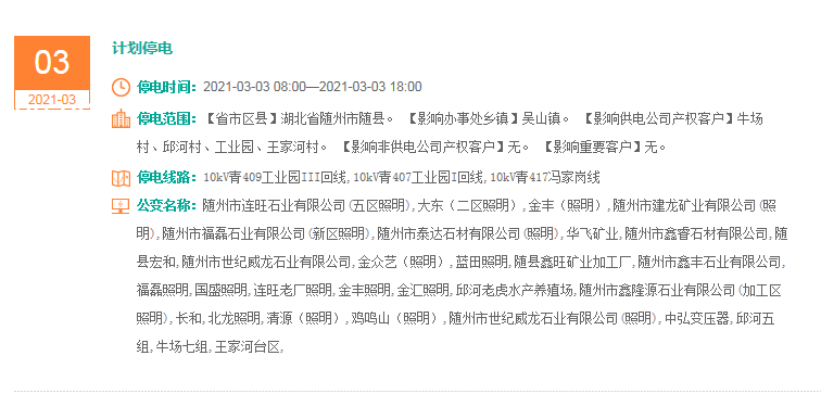 停电时间:2021-03-03 08:00—2021-03-03 18:00