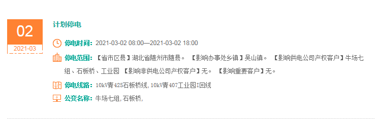 停电时间:2021-03-02 08:00—2021-03-02 18:00