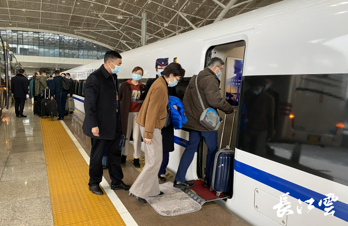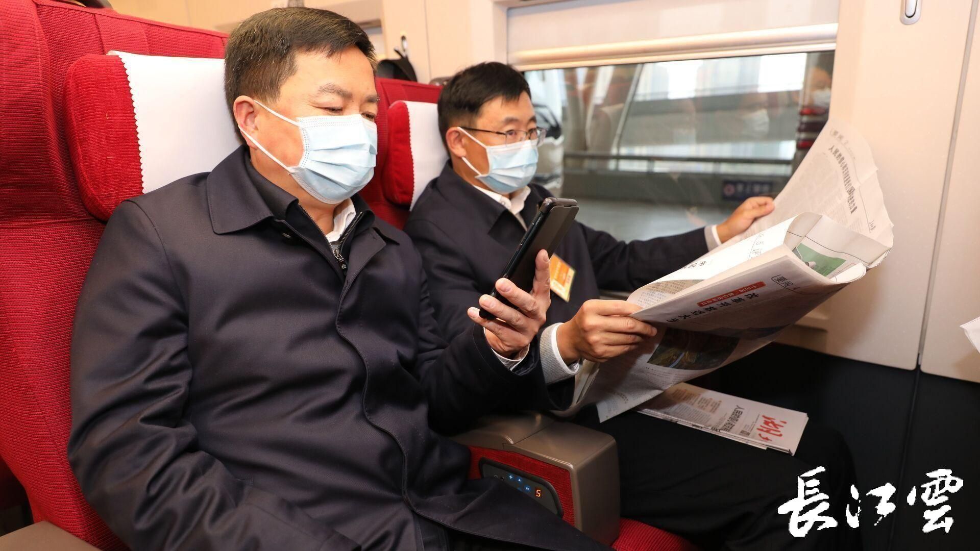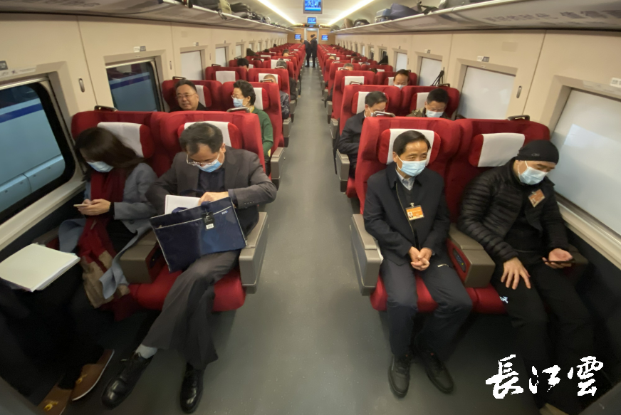 8点10分,代表们抵达武汉站,登上G588列车前往北京。