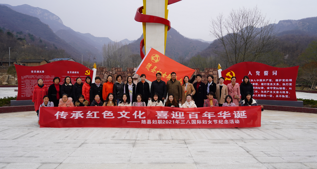 春回大地,万象更新。为庆祝中国共产党建党100周年, 3月8日上午,县妇联组织随县优秀女干部代表和妇联执委近40人赴田王寨红色教育基地参观学习,瞻仰革命圣地,缅怀革命先辈事迹,寻访先辈足迹,接受红色教育。