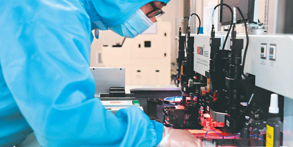 武汉光电工业技术研究院为中小企业提供技术服务。图为无尘车间里工程技术人员为芯片做“焊接”。长江日报记者高勇 摄