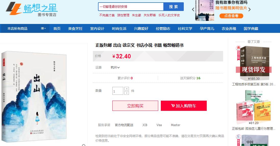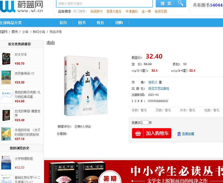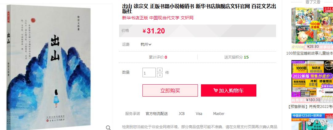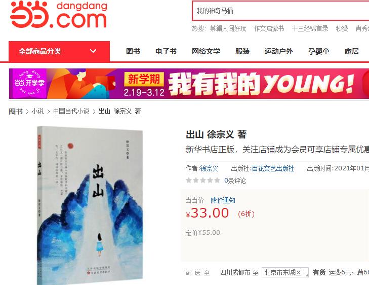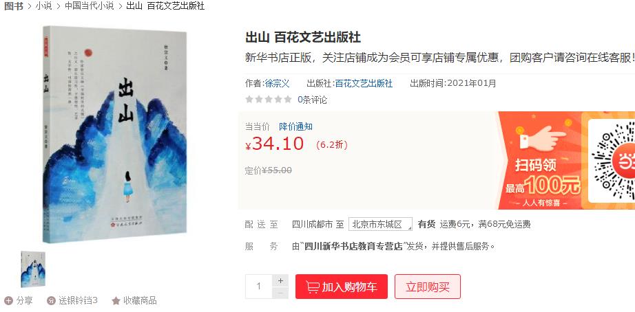 近日,随州作家徐宗义历时两年创作的、由百花文艺出版社公开出版的长篇小说《出山》正在热销,记者网上搜索发现,中国图书网、蔚蓝网、文轩网、京东、天猫、当当网等均在销售。