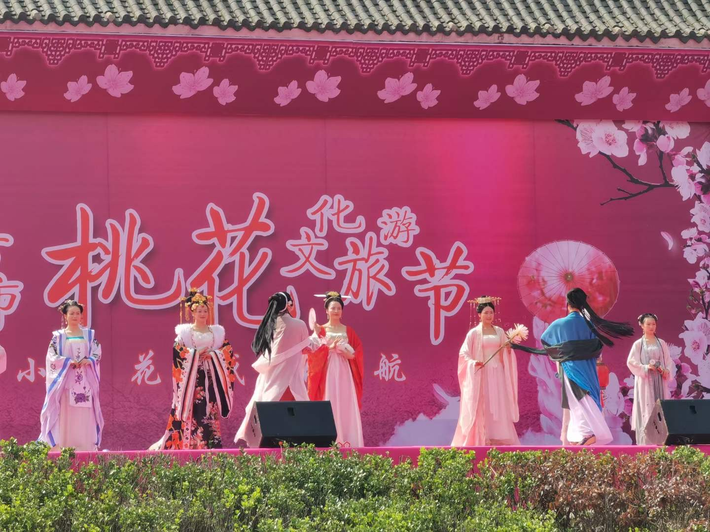 在尚市镇群金村桃花园景区中心广场上,杂技《京韵俏花旦》、现代舞《蝶恋花》、义阳大鼓《喜赞桐柏山》、《随州慢板》、《汉服秀》等节目精彩上演,赢得台下观众阵阵掌声。
