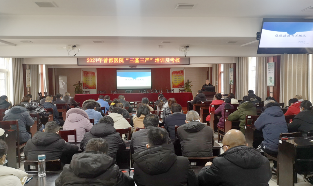 2021年3月10日下午,随州市曾都医院举办了2021年“三基三严”培训及考核会,全院青中年医药技工作人员共计107人参加培训。