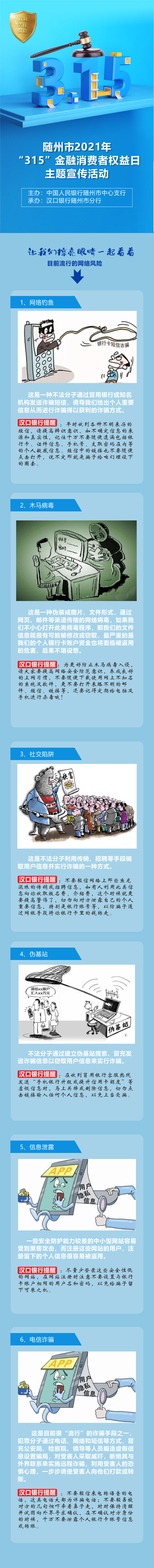 为提高人民群众金融权益保护意识,贯彻落实好3.15金融消费者权益保护日活动要求,把金融知识普及教育这件好事落到实处,由中国人民银行随州市中心支行主办、汉口银行随州市分行承办的“一日一主题”“3•15”金融消费者权益保护周系列主题宣传进行到第七期,本期由汉口银行随州分行为大家带来《金融网络安全小课堂》,敬请期待!