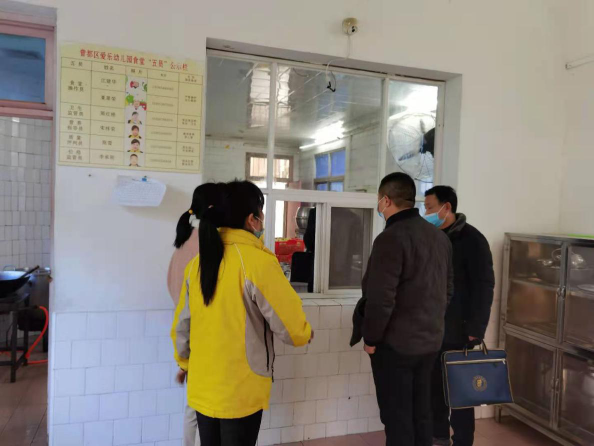 检查组查看爱乐幼儿园食堂环境卫生情况
