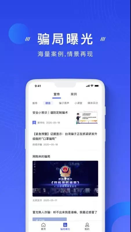 同时,APP还覆盖了很多专业的防骗战术以及诈骗案例,并通过全面的数据挖掘与比对,实现智能识别疑似诈骗电话、短信、APP风险,并对风险行为预警及提示,有效封堵诈骗行为;结合实际使用场景帮助用户身份验证、支付风险核验即将上线;