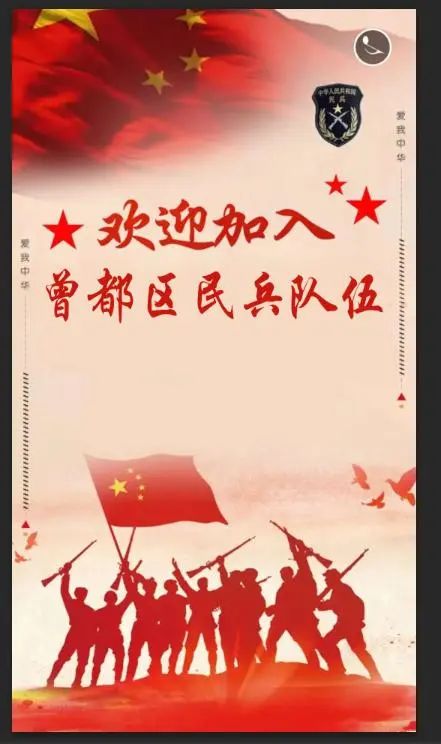 请符合条件的您到曾都区人武部或通过所在镇(办)管委会武装部统一报名,踊跃参加民兵组织,成为一名光荣的曾都民兵!
