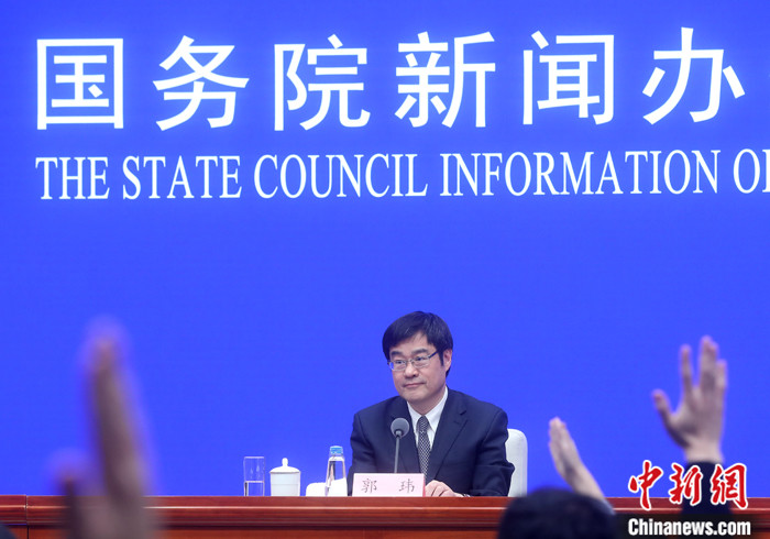 3月5日,中国国务院新闻办公室在北京举行吹风会,解读政府工作报告有关情况,对外界关切作出回应。国务院研究室副主任郭玮出席。 中新社记者 张宇 摄