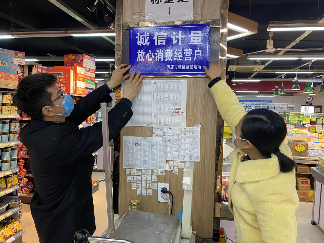 何店市场监管所围绕商家计量器具是否周期检定合格并在有效期内使用及是否存在计量作弊等违法行为开展检查行动,对严格规范使用计量器具的经营者,向其颁发“诚信计量放心消费经营户”公示牌进行鼓励,对使用无强制检定合格标志电子秤且“缺斤少两”的个别商家,张贴“缺斤少两黄牌警告经营户”公示牌进行警告。曾都经济开发区市场监管所对辖区经营主体开展培训,向各经营户代表讲解了《消费者权益保护法》和《食品安全法》,引导经营户依法依规经营。
