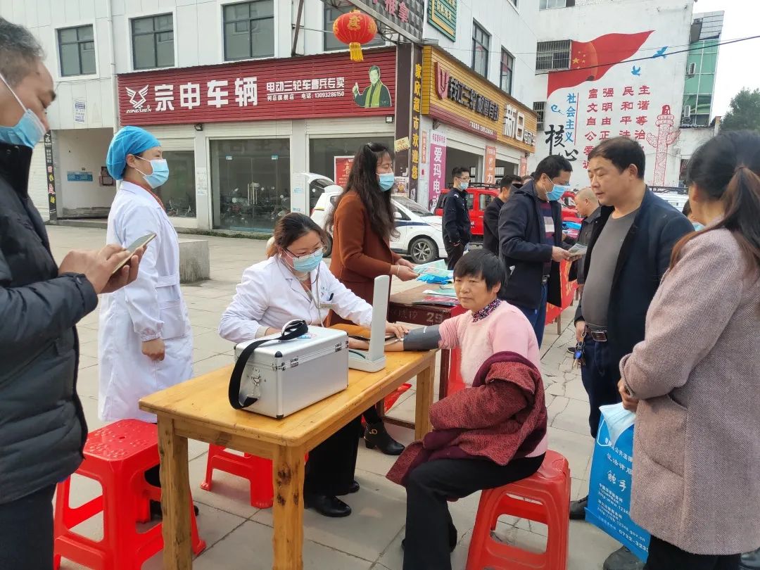 同时,镇卫生院在集中宣传点开展健康义诊,为居民测量血压,宣传疫情防控等卫生健康知识。
