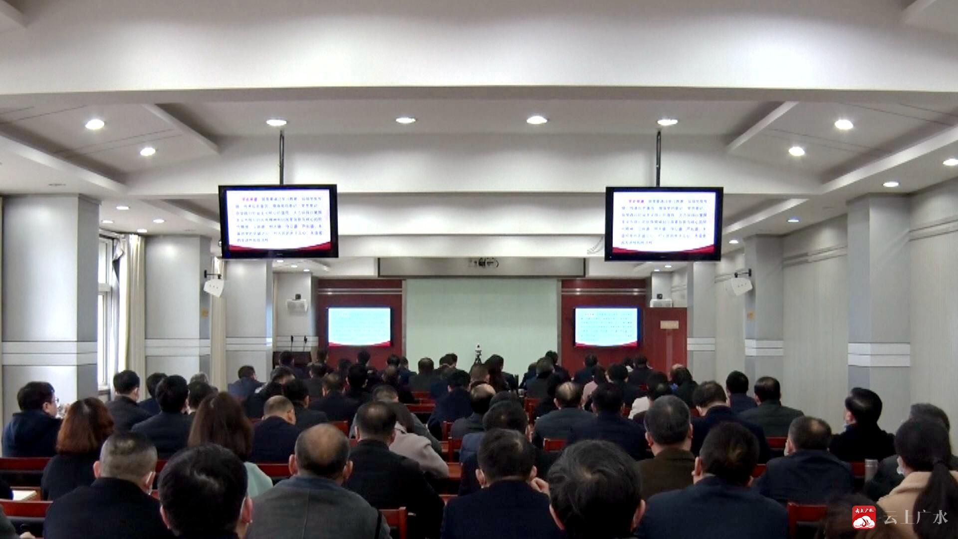3月19日,广水市委书记黄继军、市长杨光胜、市人大常委会主任石守超,市委副书记刘秀玲等市“四大家”领导集中收听收看党史学习教育中央宣讲团报告会,中央宣讲团成员、军事科学院副院长曲爱国作宣讲报告。