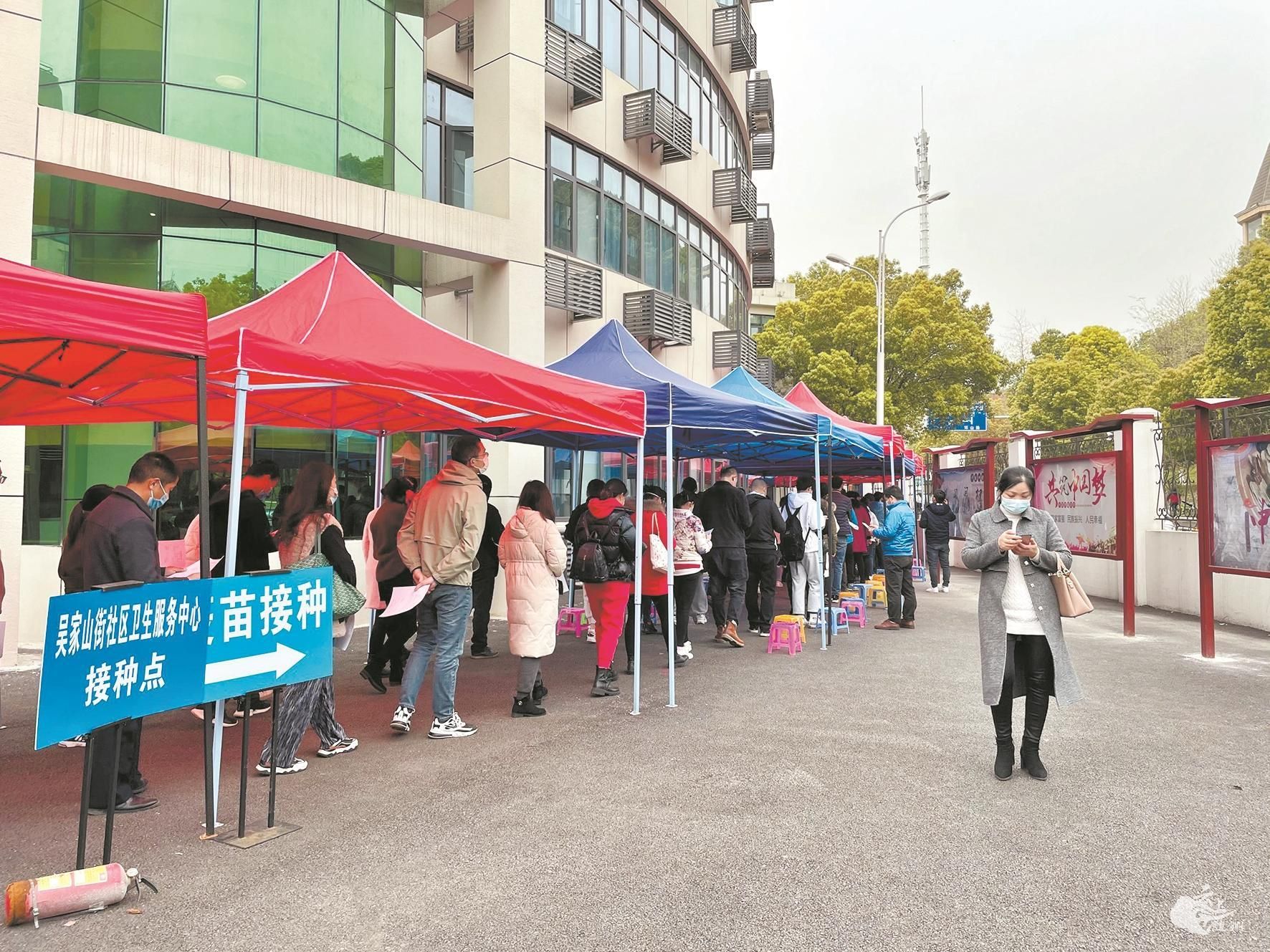 在江岸区后湖街金桥社区卫生服务中心接种点,除正常工作时间外,近日还增加了夜间接种,从晚7时至晚9时。