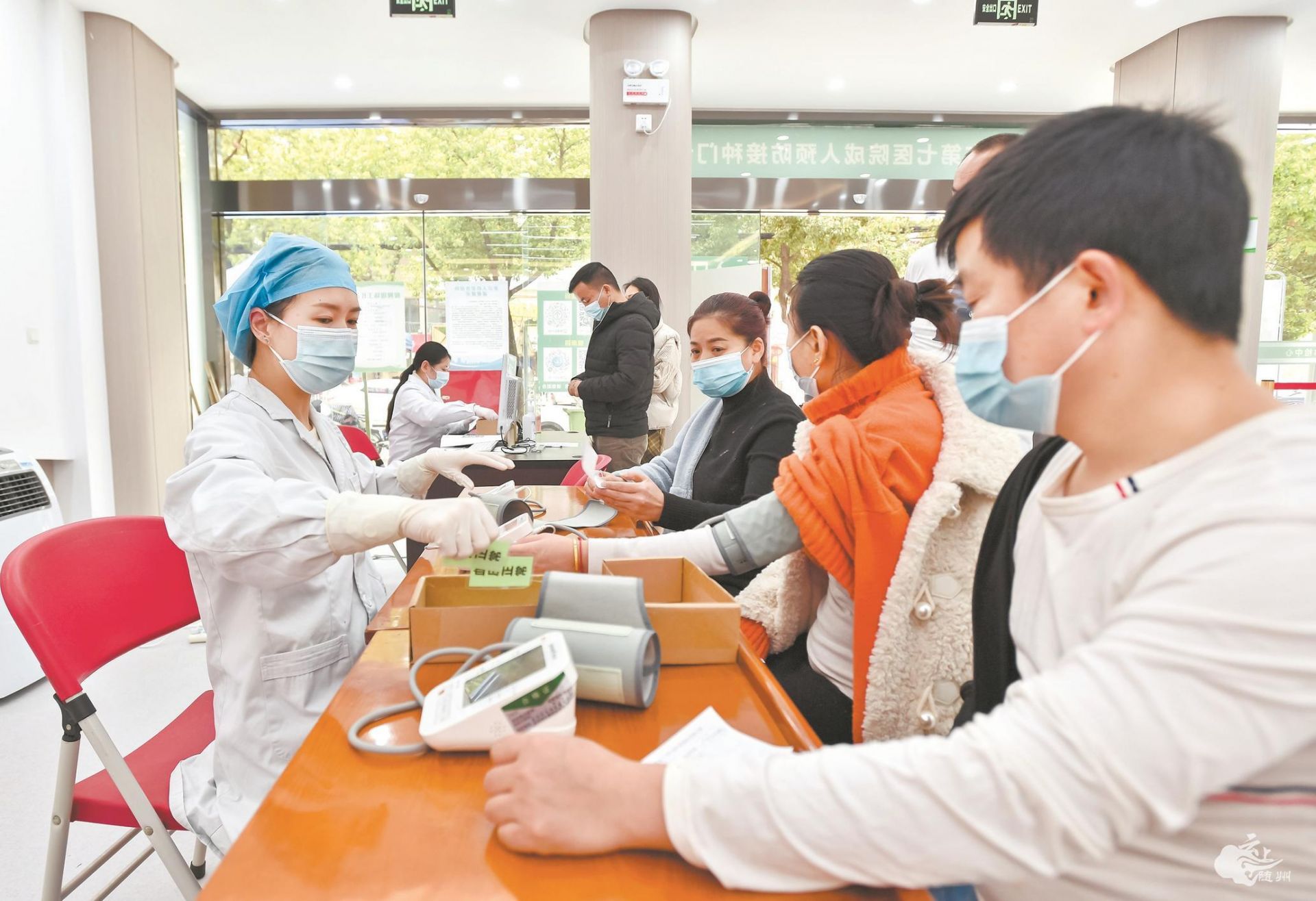 在洪山区梨园街东湖社区卫生服务站接种点,除8名经过专门培训的医护人员外,医联体单位梨园医院也派出2名医护人员前来支援。