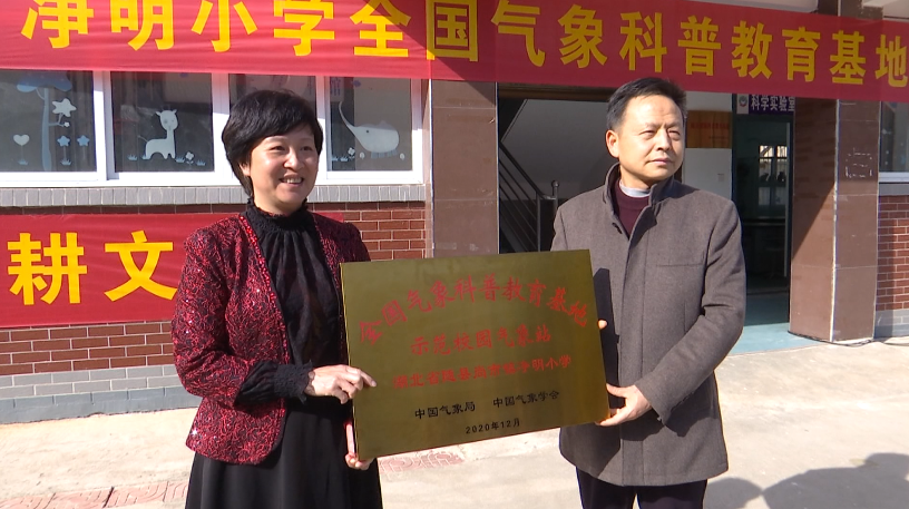 3月24日,湖北省气象局副局长方虹、省气象学会副秘书长刘林霞一行来到随县尚市镇净明小学,为该校获“全国气象科普教育基地示范校园气象站”授牌。