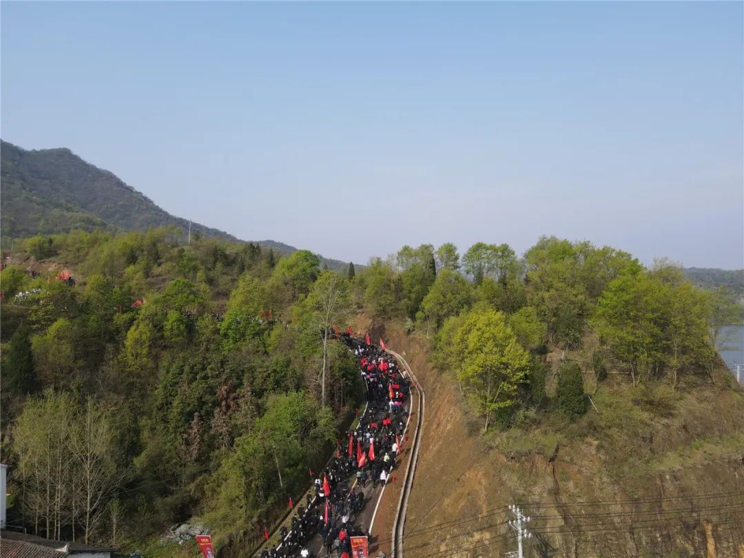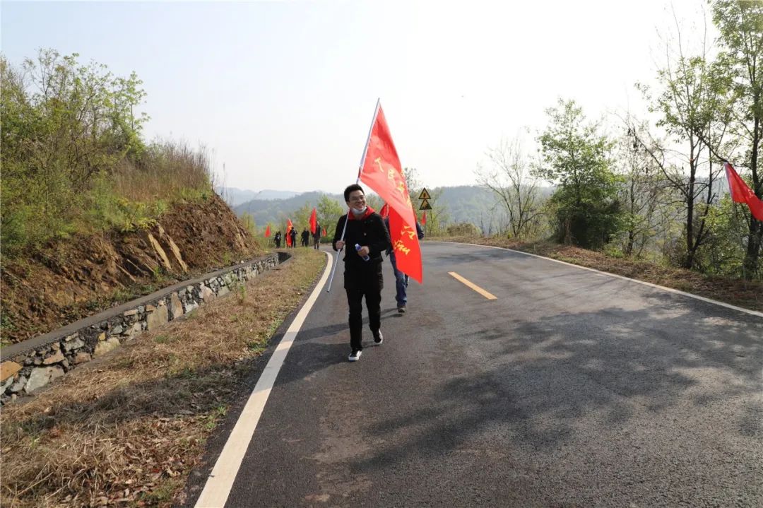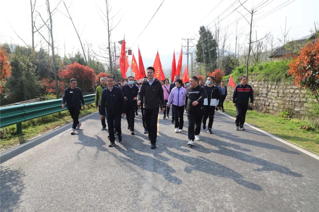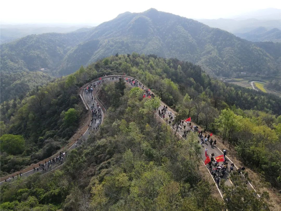 来自全区79个单位的1819名干部职工,从九口堰新四军第五师革命旧址纪念馆向罗什寨山进发,全程2.5公里。