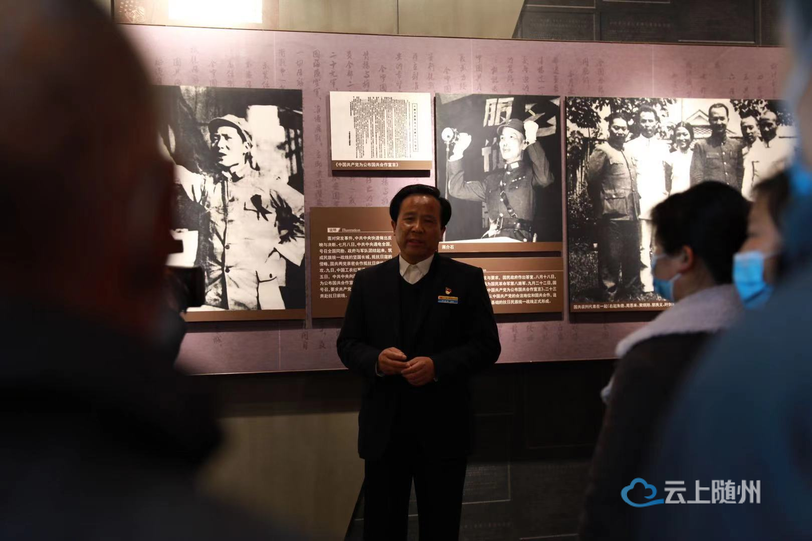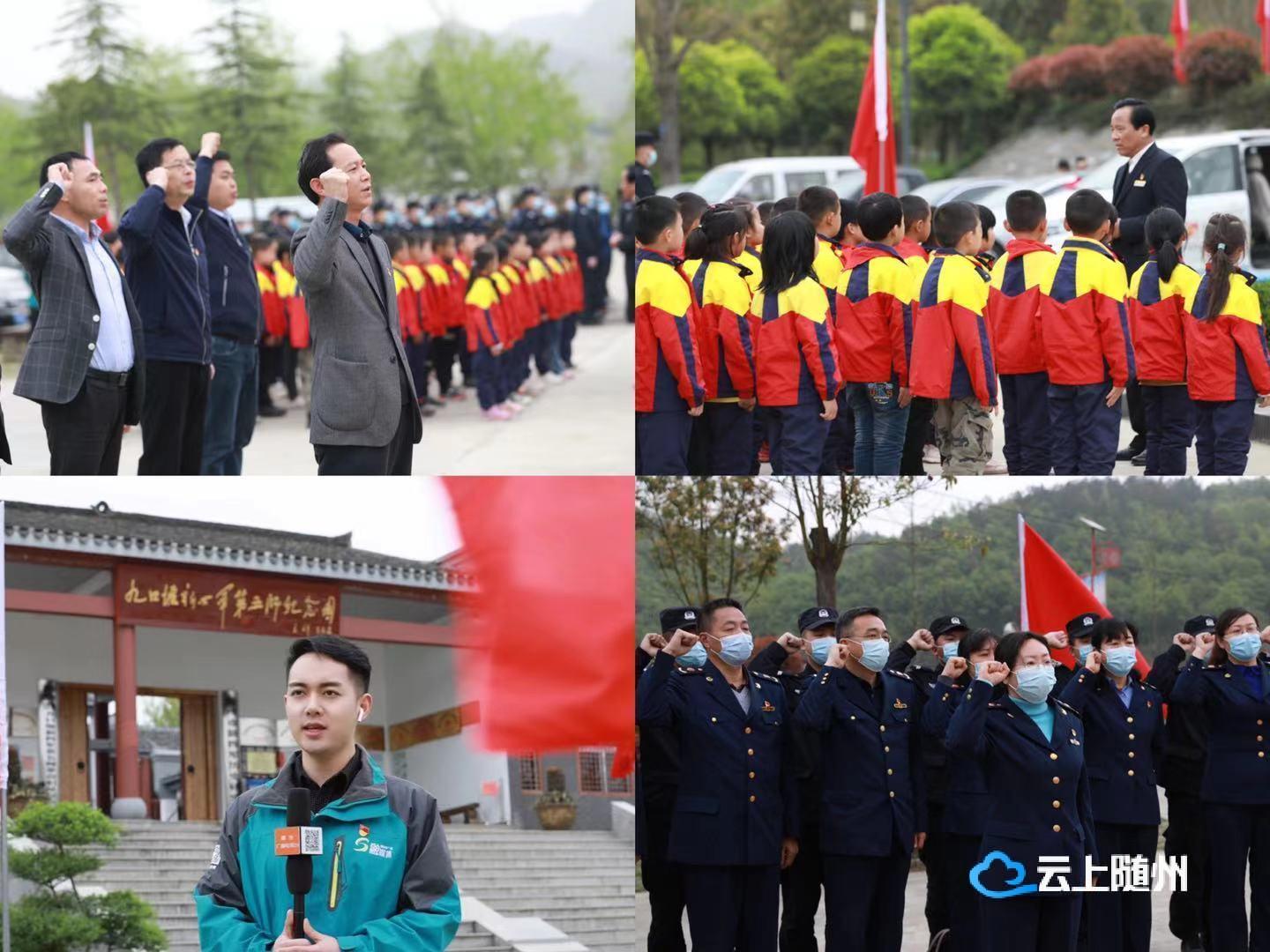随州广播电视台主持人陈烁在连线中就九口堰新四军第五师旧址纪念馆和建党100年我市将开展各类活动进行了介绍,活动现场的党员重温了入党誓词,学生缅怀革命先烈,接受了爱国主义教育。