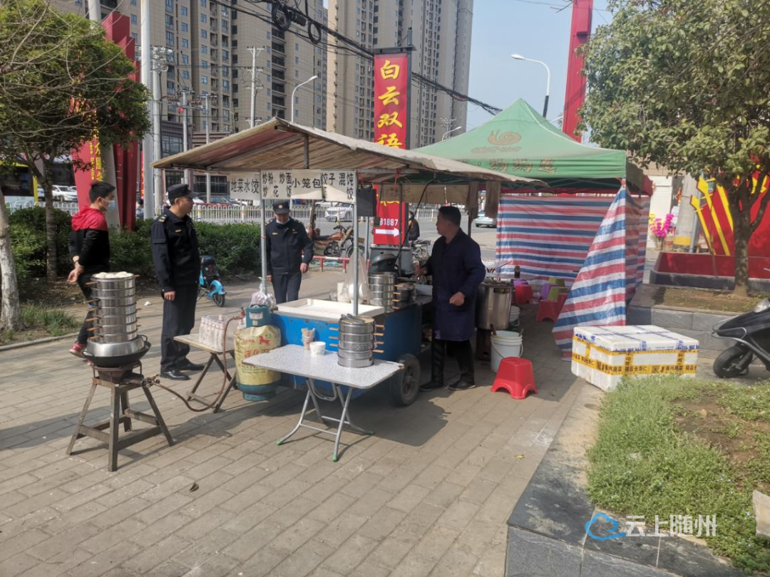 “师傅,您的摊位摆到人行道上,路过的行人都挤到机动车道上了,这样既造成了安全隐患,又影响了市容市貌,希望您合规经营,南郊的市容秩序离不开大家的支持和配合。”3月29日,南郊街道综合执法中心工作人员周勇昌对解放西路路边占道经营的摊主说。
