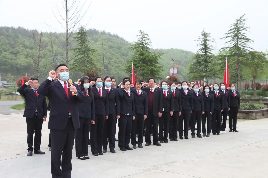 活动中,干警们在革命英雄雕塑前,列队肃立,高举右拳,面对着鲜红的党旗庄严宣誓,重温入党誓词,干警们铿锵有力的铮铮誓言在广场上久久回荡,见证着他们的入党初心,也见证着他们执法为民的忠诚与担当。