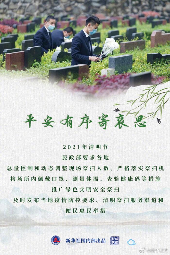 今年清明节是疫情防控常态化之下的第一个清明节。民政部19日在京召开2021年全国清明节祭扫工作电视电话会议,要求确保清明节祭扫活动平安有序,努力实现全年殡葬服务管理安全零事故。(记者高蕾、孙少龙,海报设计张晨光)