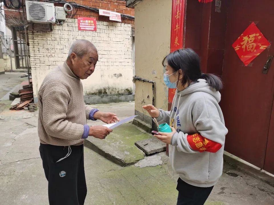 近日,西城街道通津桥社区开展高龄补贴惠民政策宣传。社区工作者通过网格查询、走访,及时通知符合条件的老人或其家人,确保符合条件的高龄老人都能够及时享受国家优惠政策。(熊梓煜)