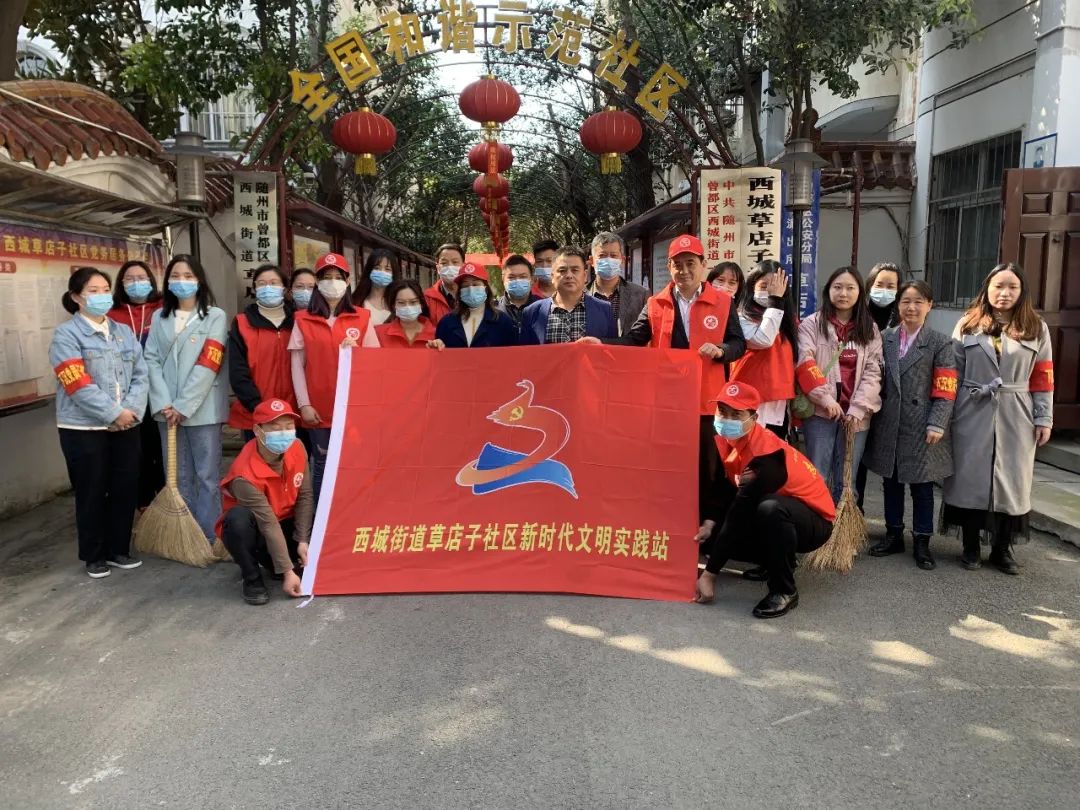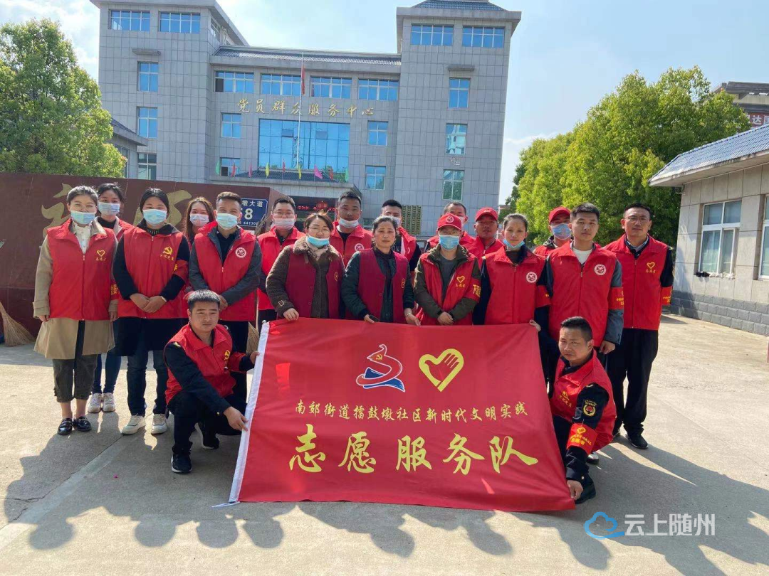 4月9日,南郊街道擂鼓墩社区新时代文明实践站组织下沉党员志愿者开展以“党旗领航,文明共创”为主题的环境卫生集中整治活动。(周爱华、黄娜娜)