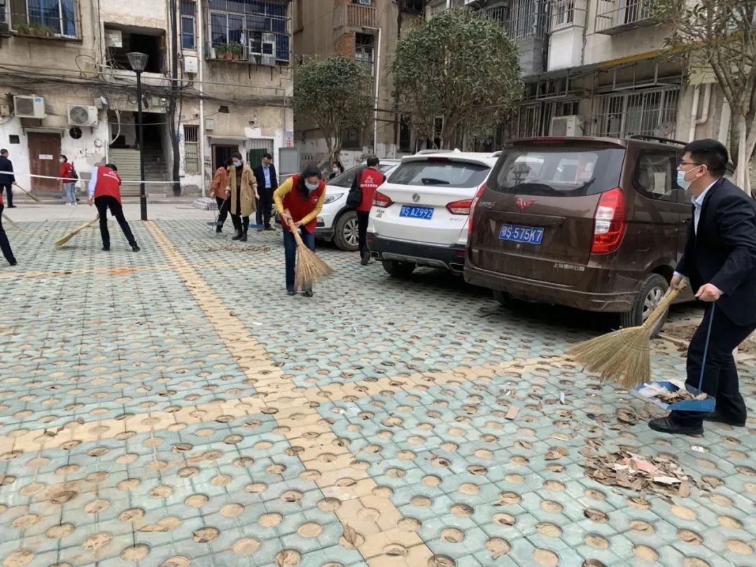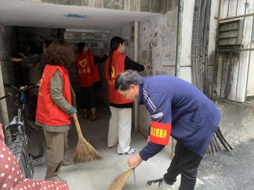 飞来土社区新时代文明实践站联合45名下沉党员在辖区报业印刷厂院内开展环境卫生大清扫。