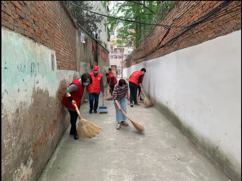 九曲弯社区新时代文明实践站组织社区工作人员、志愿者、下沉单位、辅警在辖区内开展环境卫生大扫除。